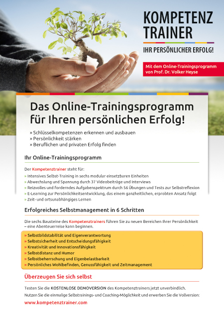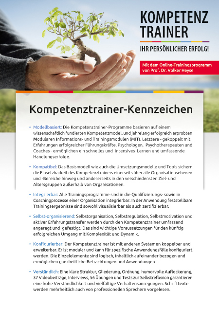 (4) 2012 entstand das Online-Trainingsprogramm Kompetenztrainer. Ihr persönlicher Erfolg mit drei Nutzerzielen: